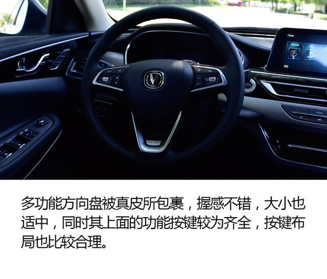 锐程CC三幅式多功能方向盘采用真皮包裹,握感不错,大小也适中,两侧的多功能按键比较齐全,按键布局也较为合理。
