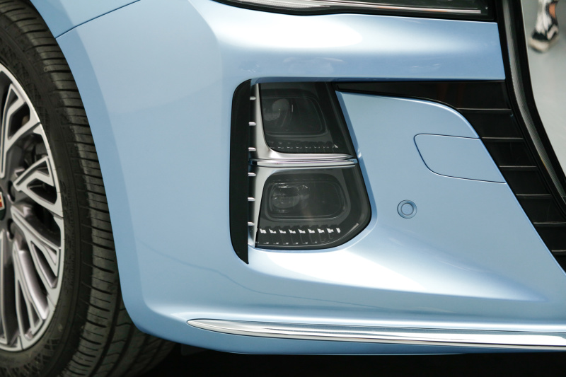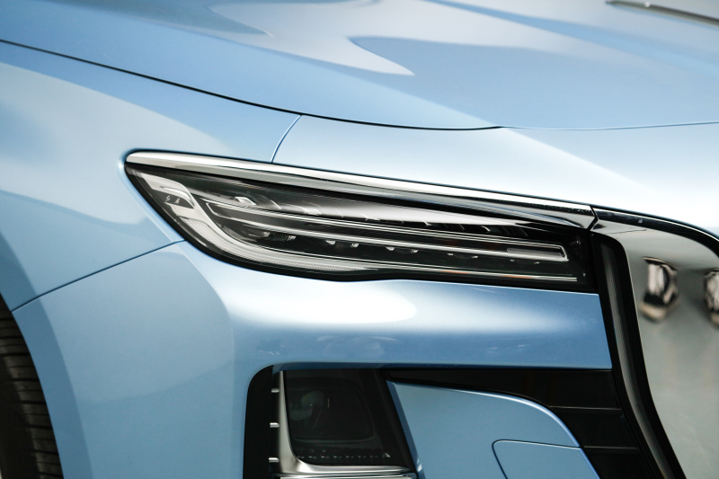 分体式前灯组也是红旗H9的同款,但部分设计细节更加复杂,尤其是下方的前大灯组融入银色小格栅进行设计,灯源为全LED。