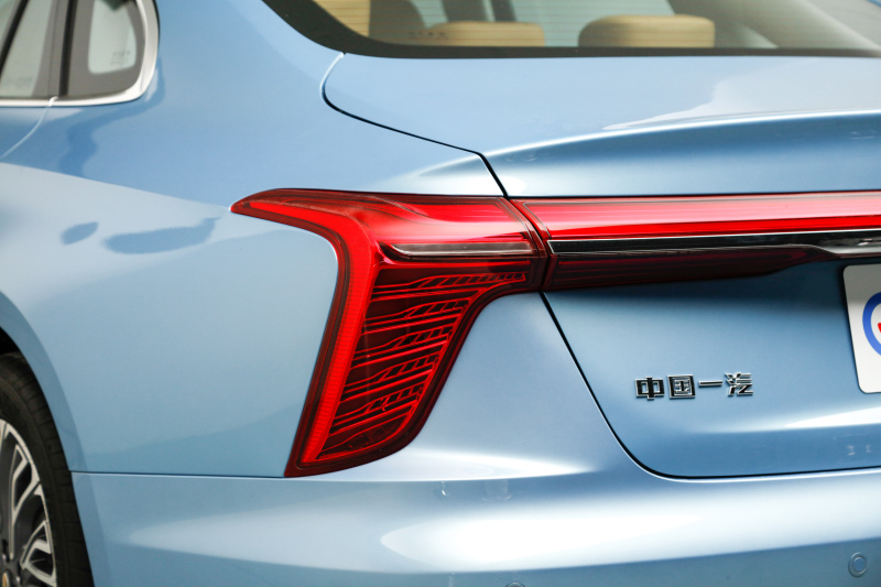 尾灯组部分个人认为观感非常出色,虽然连体式尾灯不是新鲜玩意,但用在红旗车上,总是看起来很和谐,尾灯组大小适中,灯腔内部的结构看起来也足够精致。